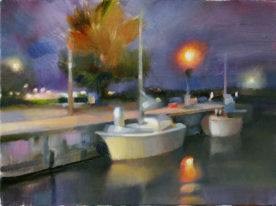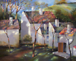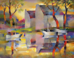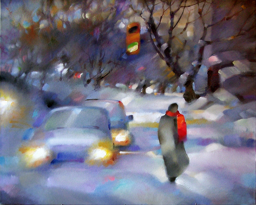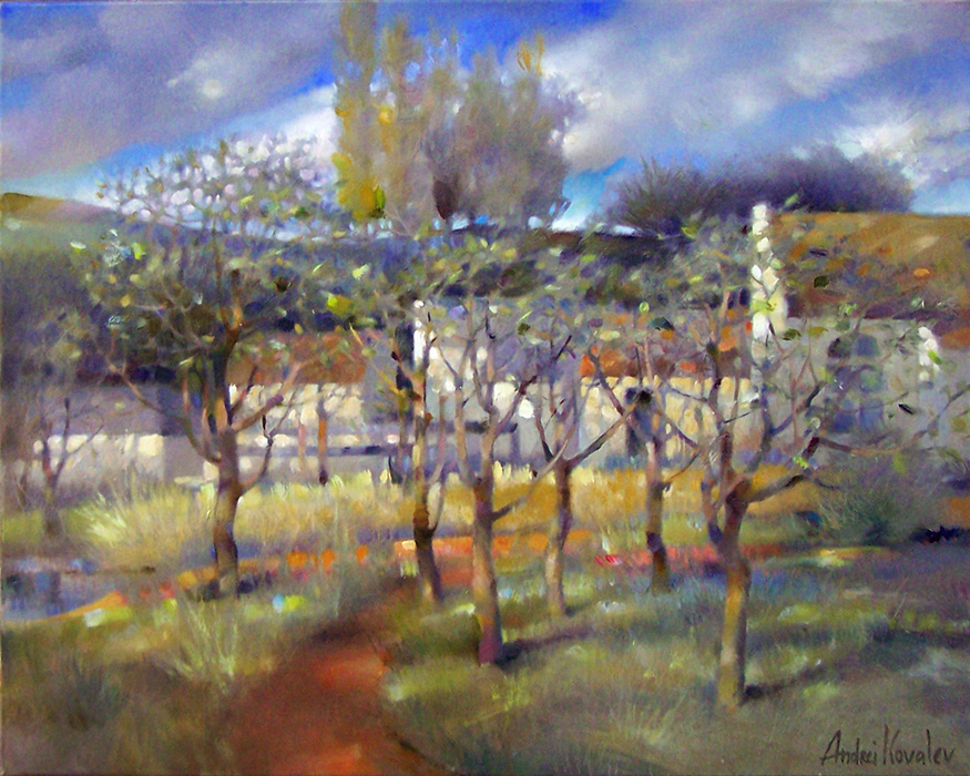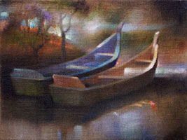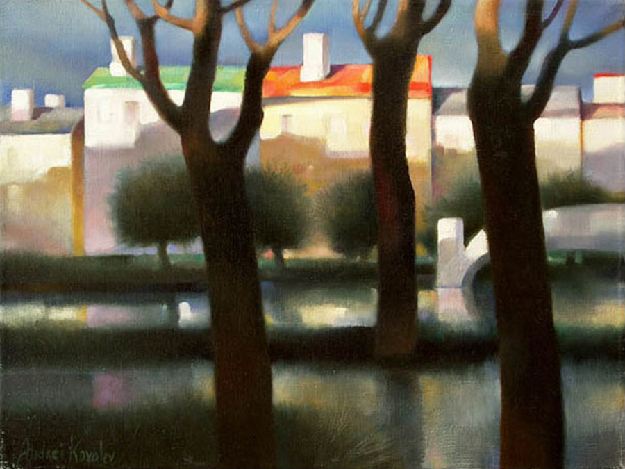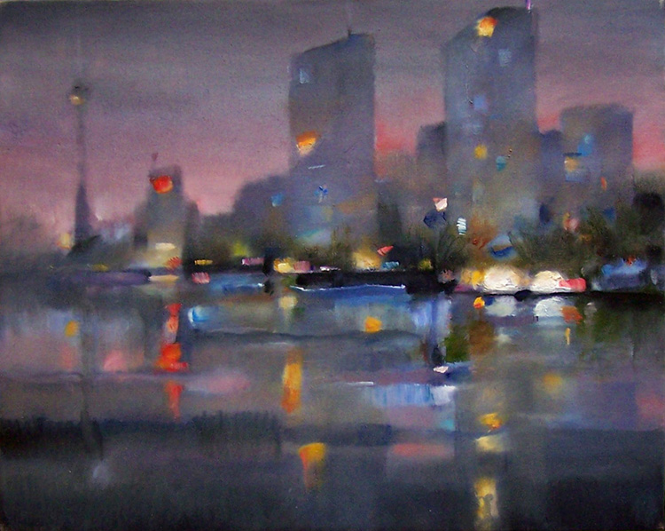 Normally I do not paint "en plein air", neither use photos. Instead I just walk around and bring my impressions to the studio.